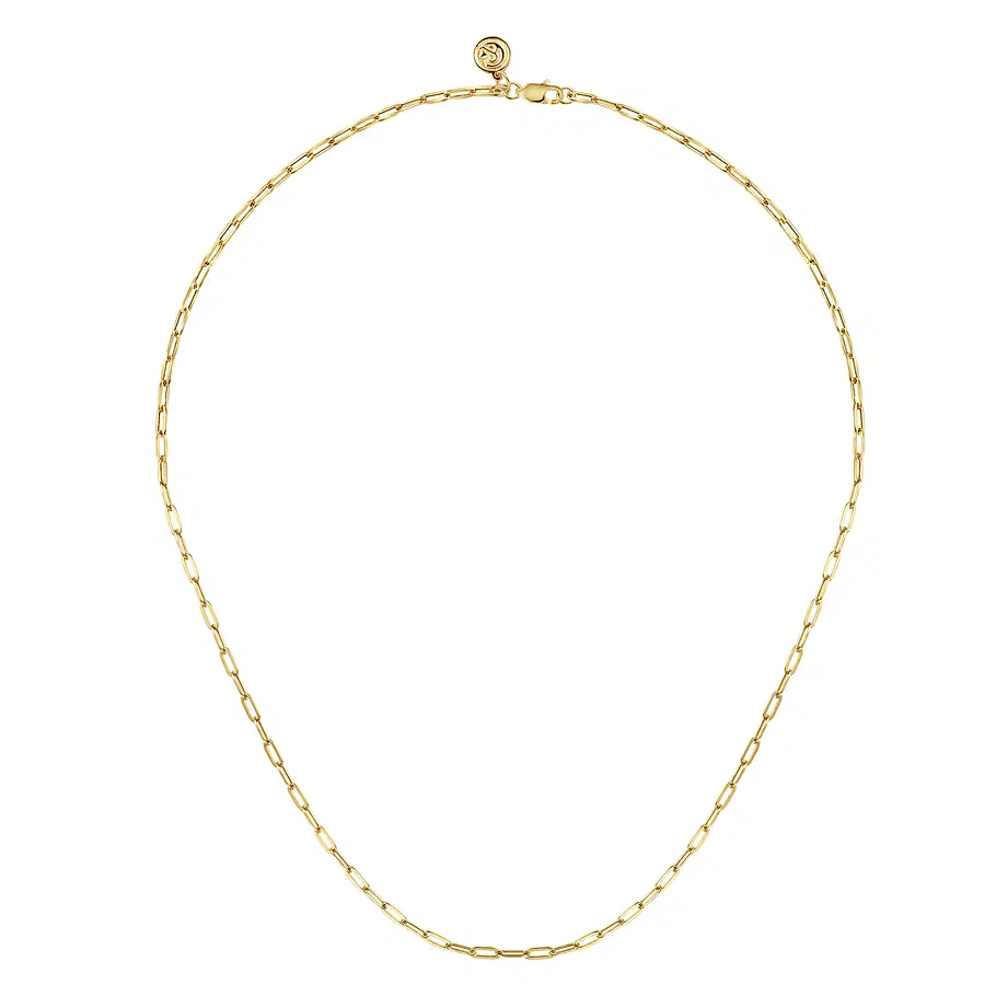 14K Yellow Gold Hollow Paper Clip Chain Necklace
